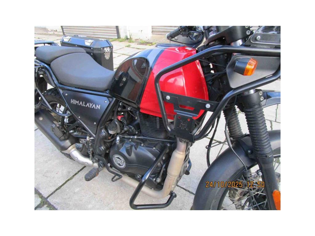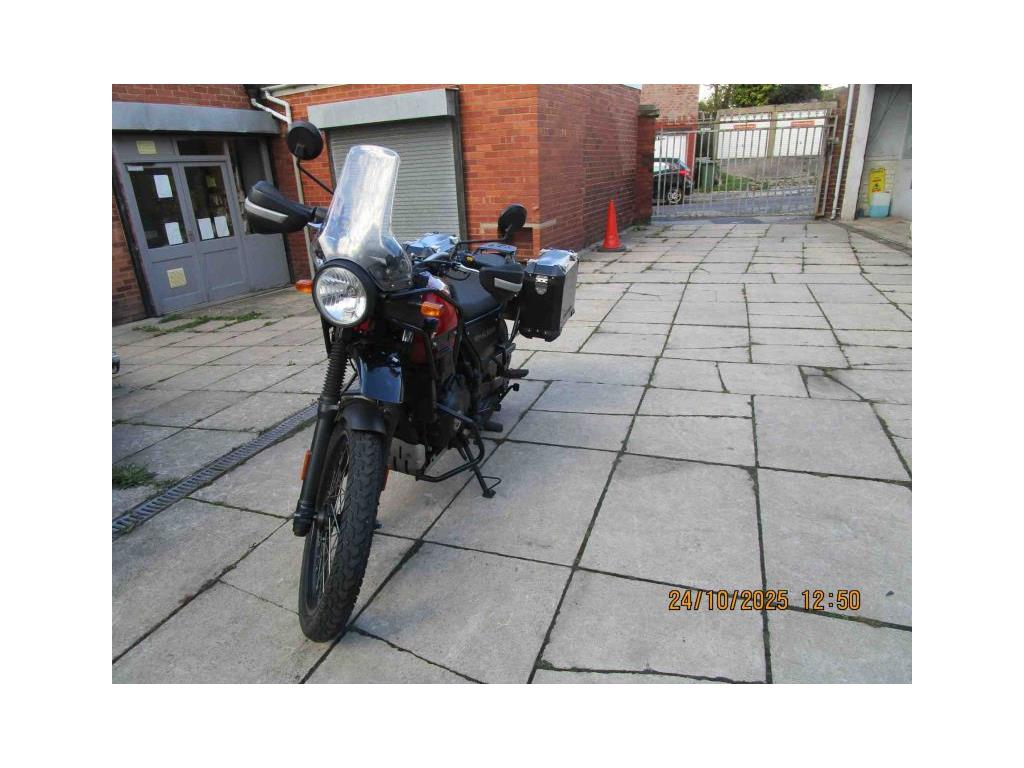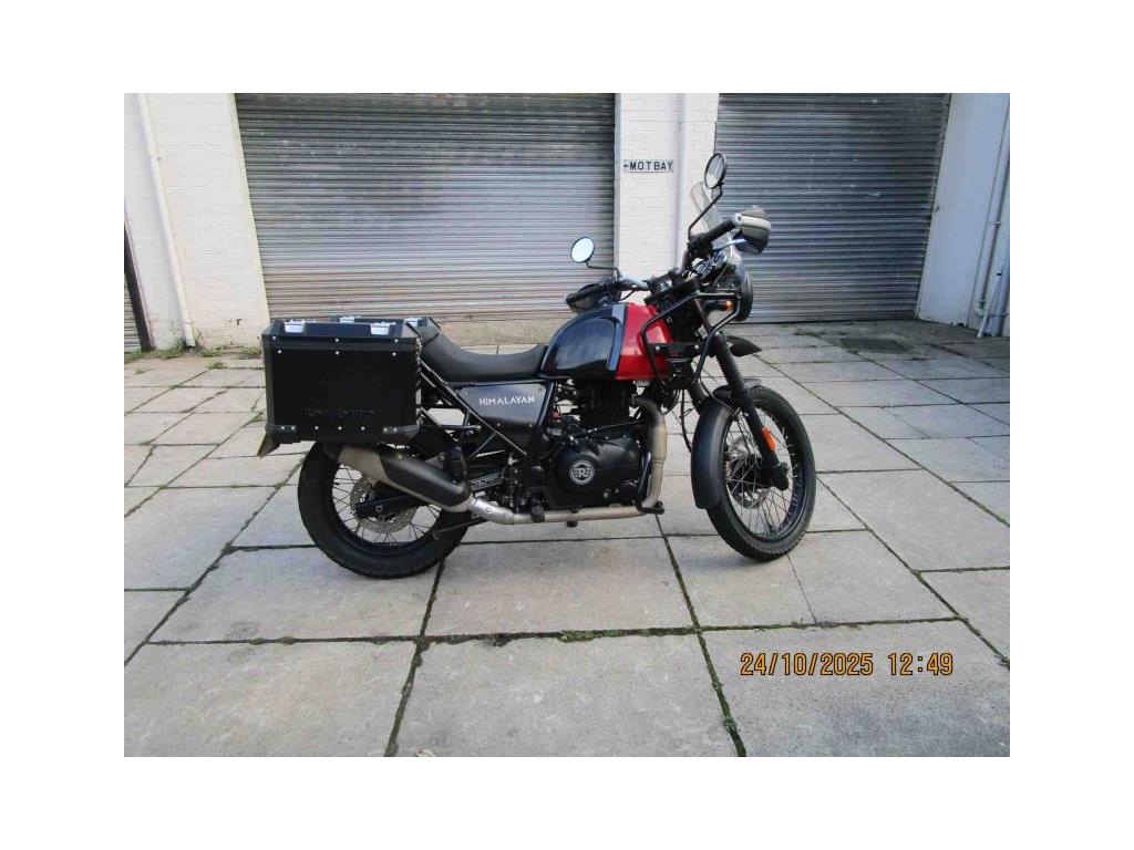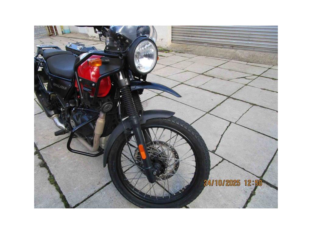 NEW IN THIS NICE EXAMPLE OF THE HIMALAYAN E5 MODEL IN ROCK RED. THIS IS A LOW MILEAGE (9522)ONE OWNER BIKE WITH NICE EXTRAS FITTED- HEATED GRIPS,CHAIN OILER, HARD PANNIERS.KNUCKLE GUARDS AND FRONT CRASH BARS.READY FOR YOUR PLEASURE. COMES WITH 2 KEYS AND HANDBOOK AND SOME SERVICE HISTORY. USUAL DEALER FACILITIES APPLY.