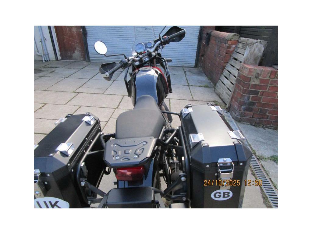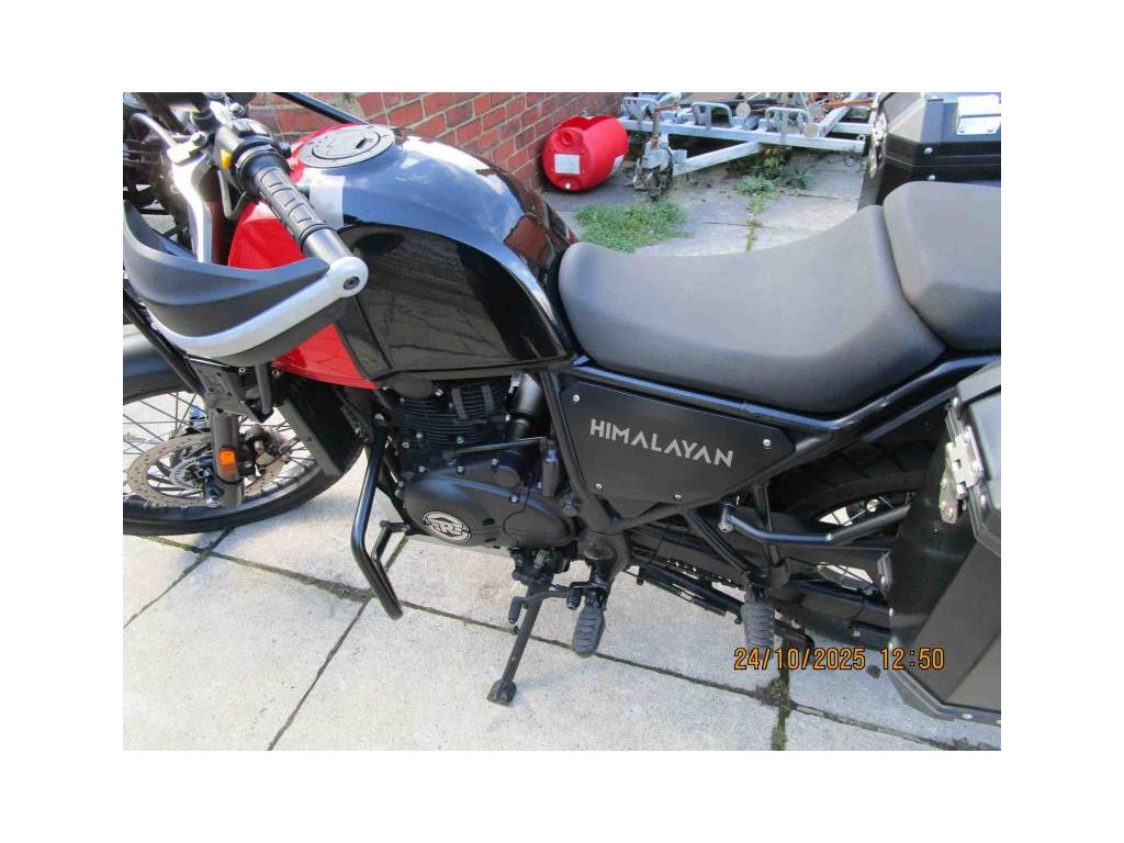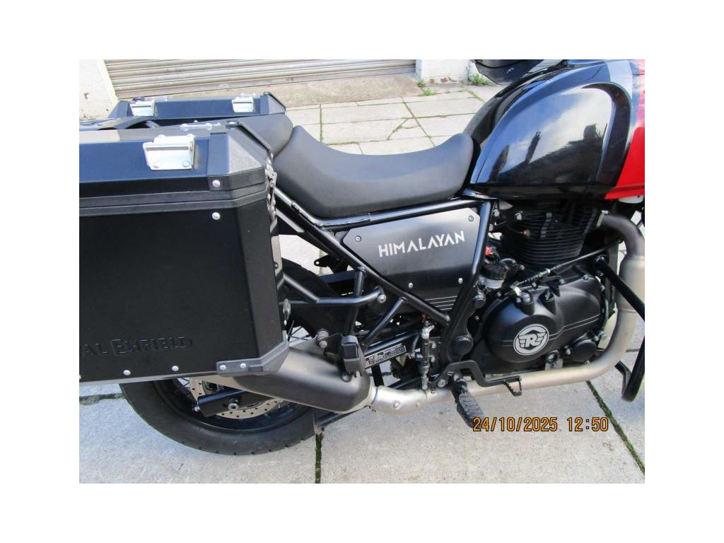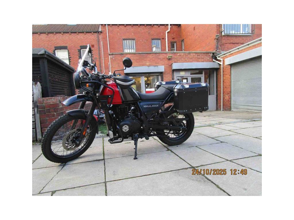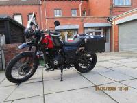 NEW IN THIS NICE EXAMPLE OF THE HIMALAYAN E5 MODEL IN ROCK RED. THIS IS A LOW MILEAGE (9522)ONE OWNER BIKE WITH NICE EXTRAS FITTED- HEATED GRIPS,CHAIN OILER, HARD PANNIERS.KNUCKLE GUARDS AND FRONT CRASH BARS.READY FOR YOUR PLEASURE. COMES WITH 2 KEYS AND HANDBOOK AND SOME SERVICE HISTORY. USUAL DEALER FACILITIES APPLY.